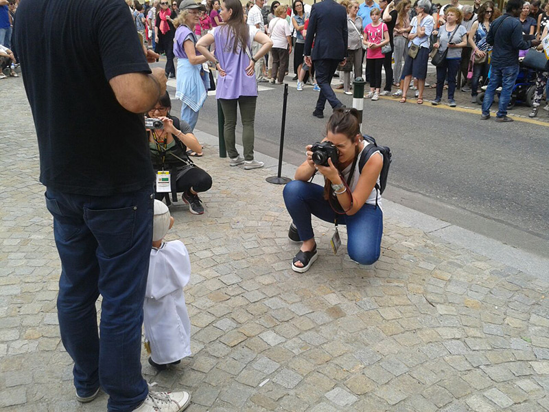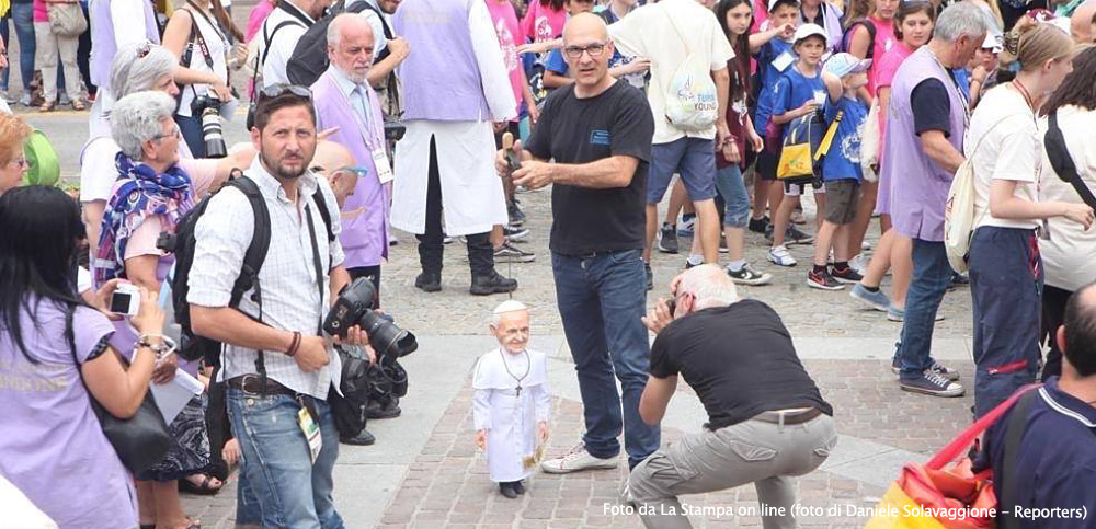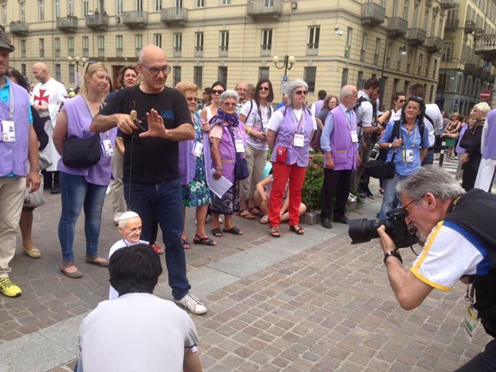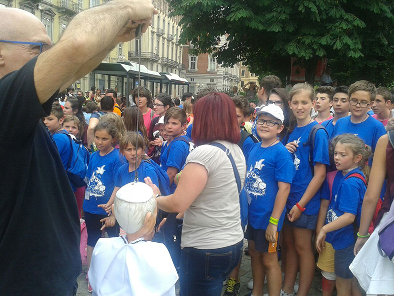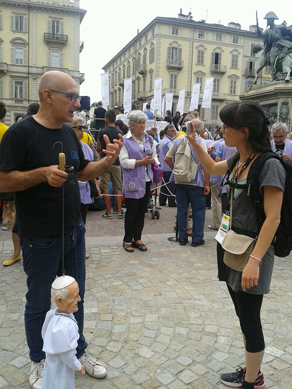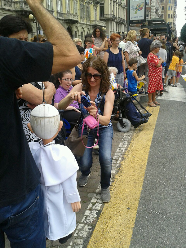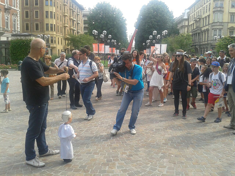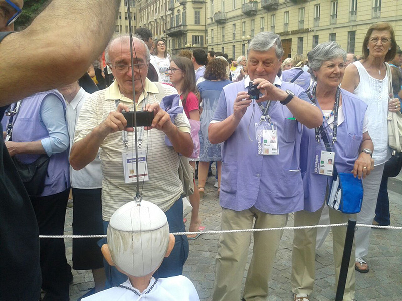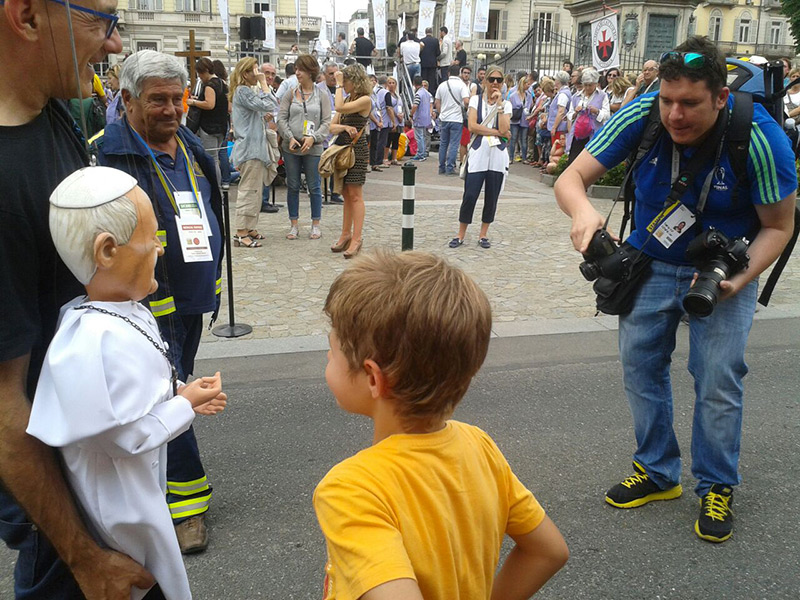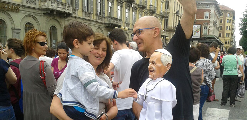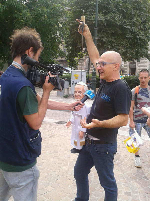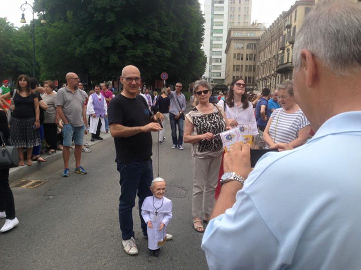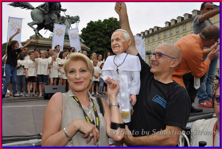 Non poteva mancare tra le nostre sosia-marionette quella di Papa Francesco. Forse, e senza forse, il personaggio più importante al mondo in questo momento storico alquanto travagliato per tutto il nostro pianeta. Una persona che sta cercando con enorme sforzo di riportare la pace nel mondo, unendo popoli divisi da sempre. Sono molto orgoglioso di aver creato, insieme al mio staff, questa marionetta, lo stesso orgoglio con cui l’abbiamo mostrata a tutto il pubblico torinese convenuto in questa lunga due-giorni.
